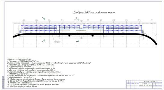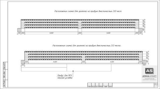 Выехав на объект и сделав все необходимые замеры, наш инженер - конструктор разработал чертеж, согласно которому сборная трибуна будет располагаться непосредственно под навесом.