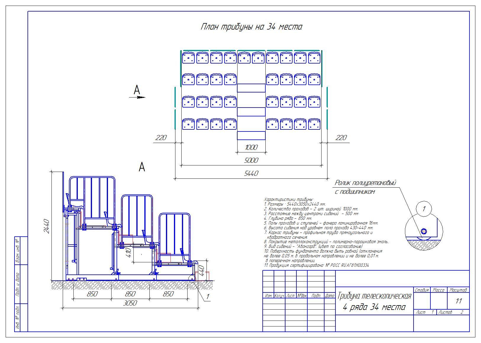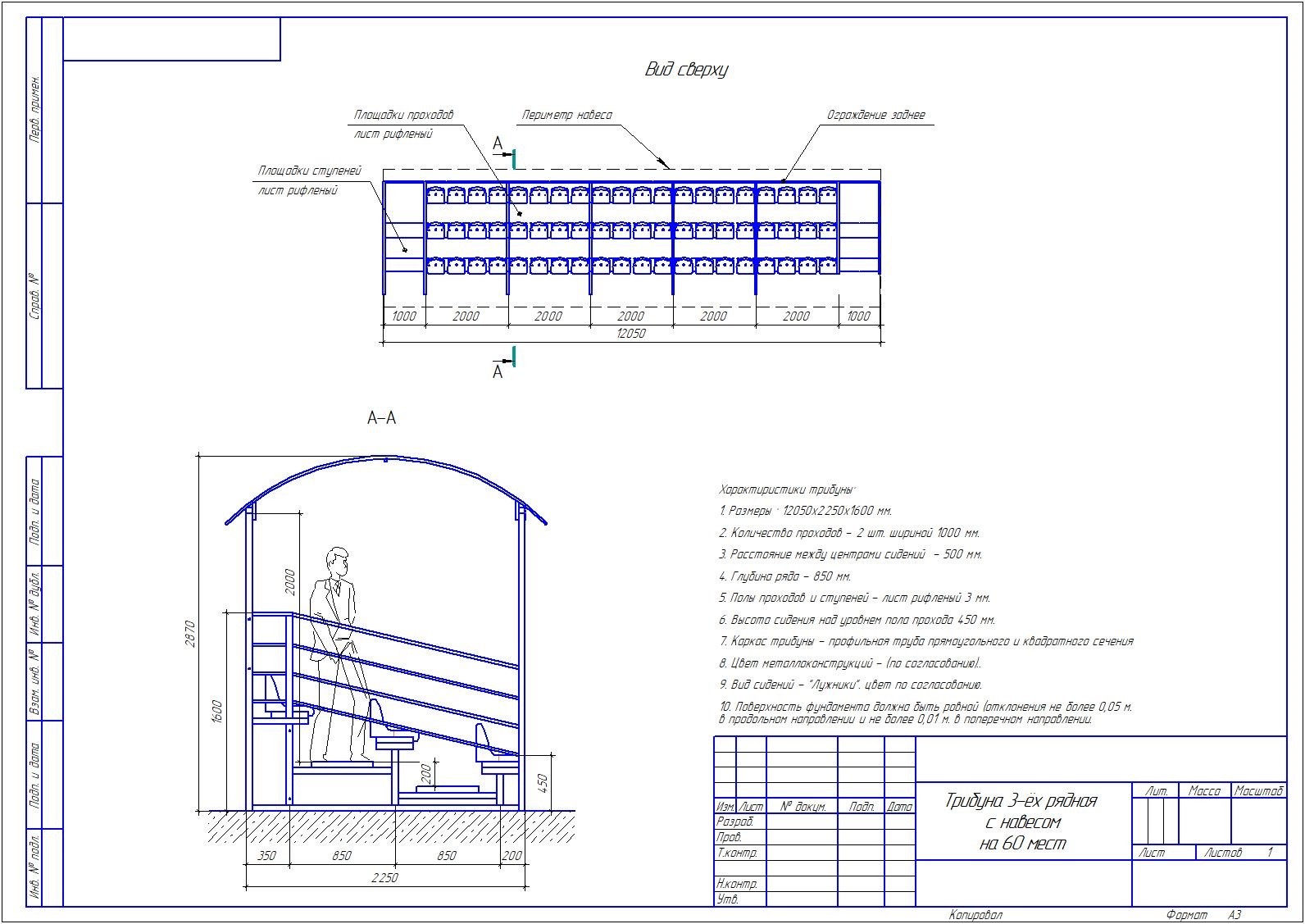 После подготовки детального ТЗ мы переходим к стадии подготовки чертежей будущей трибуны.